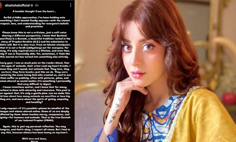 As the sacred Islamic festival approaches, Alizeh expressed her concerns regarding the method of sacrifice and the public display of the act. Clarifying that her message is not intended as criticism, she described it as a “gentle thought straight from the heart.”