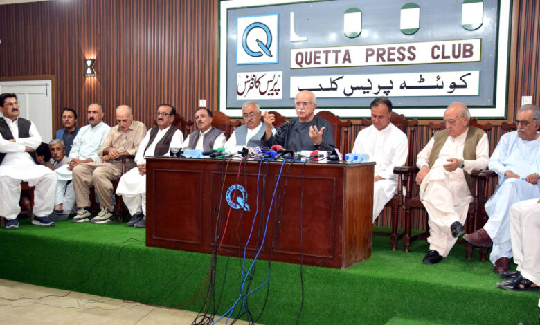 Quetta: Mahmood Khan Achakzai, Chairman of the Pashtunkhwa Milli Awami Party and head of the Tehreek Tahafuz-e-Aain Pakistan, delivered a fiery and impassioned press conference at Quetta Press Club on Friday. Surrounded by senior party leaders and supporters, Achakzai issued a strong call for all democratic forces to unite and overthrow what he called an “illegitimate” and “unconstitutional” government, warning that failure to act could result in Pakistan’s collapse.