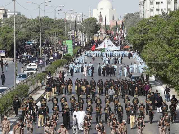 Karachi, Lahore, Peshawar, and other cities witness heightened security measures and partial mobile phone service suspension during central Muharram processions.