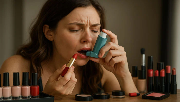 The study found that women who used blush and lipstick five or more times a week faced an 18% higher risk of asthma, while those who used fake nails, lipstick, and blush had a 47% higher risk.