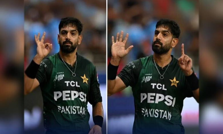 Lahore – Pakistani fast bowler **Haris Rauf** went viral on social media after making a bold “0-6” hand gesture towards Indian fans during the Pakistan-India clash.