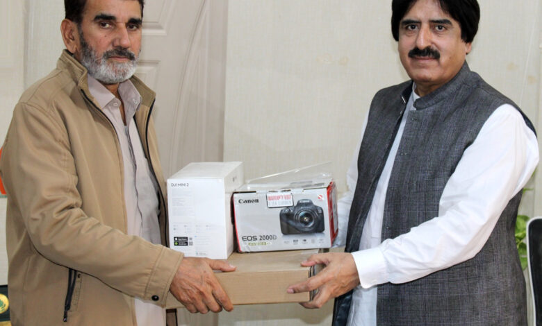 He made these remarks while handing over a **camera, laptop, drone, and other essential office equipment** to **Deputy Director Information Naseerabad Division, Naik Muhammad**.