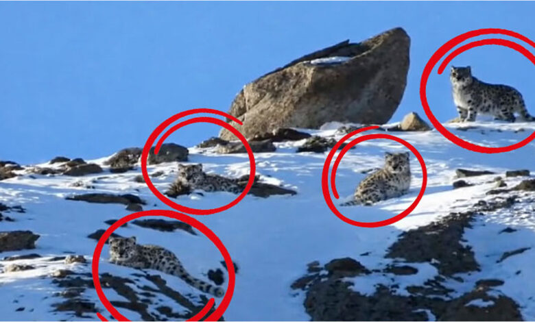 Snow leopards are among the most elusive and rare animals in the world. Their natural camouflage in snowy and rocky terrains often keeps them hidden from human eyes. Capturing even a single snow leopard on camera is considered a significant achievement; therefore, witnessing a mother with three cubs together is exceptionally rare.