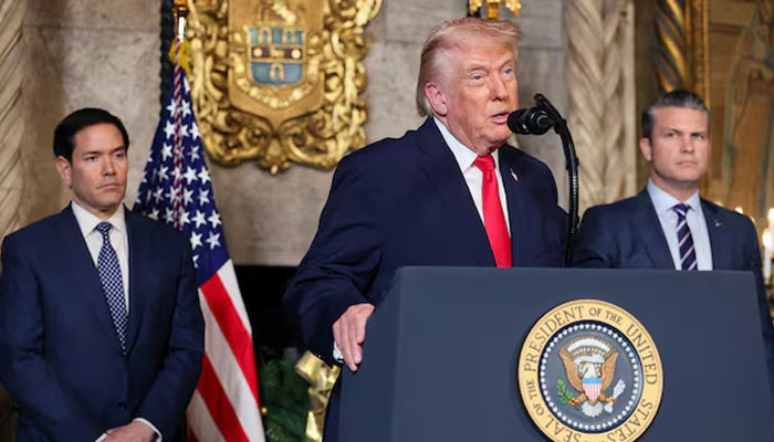 Addressing a press conference in Florida alongside the US Secretary of Defense and Secretary of the Navy, President Trump referred to the Pakistan-India conflict and mentioned the destruction of aircraft during the fighting. He said he has so far helped stop eight wars around the world, including a potential nuclear conflict between Pakistan and India. According to Trump, eight aircraft were shot down during that conflict.