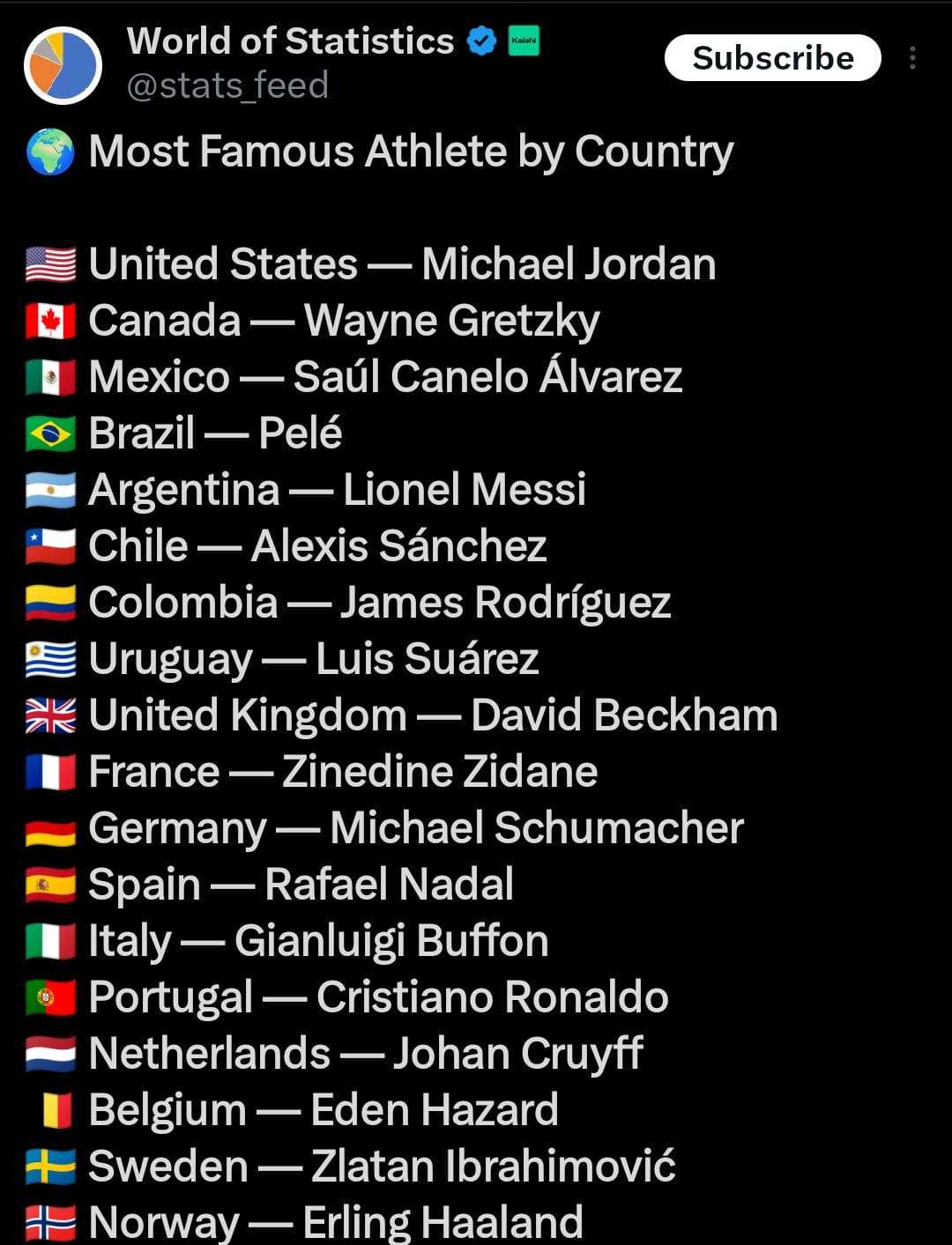 The list was shared by the well-known statistical platform *World of Statistics* and features some of the most influential and iconic sports personalities from around the world. The inclusion of Pakistan’s representative, in particular, has drawn significant attention from social media users.