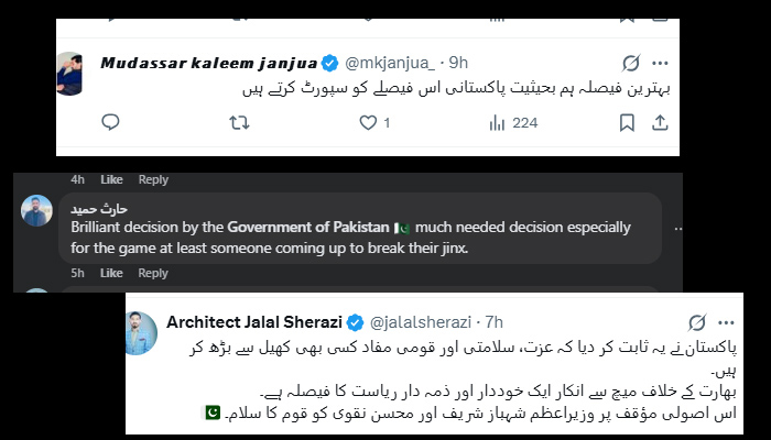 Another user, Jalal Shirazi, stated, *“Pakistan has proven that dignity, security, and national interest are greater than any sport. Refusing to play against India reflects the decision of a self-respecting and responsible state.”*