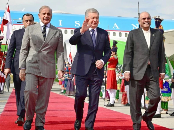 Following his arrival, President Mirziyoyev proceeded to the Prime Minister’s House, where a grand welcome ceremony was held in his honor. Prime Minister Shehbaz Sharif formally received the Uzbek president, while a smartly turned-out contingent of the armed forces presented a guard of honor. The national anthems of Pakistan and Uzbekistan were played during the ceremony.