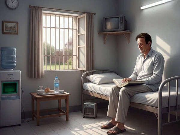 The report states that Imran Khan spends time in the lawn reading books and newspapers and sitting in the sun. The seven-cell compound has the capacity to accommodate between 30 and 35 inmates.