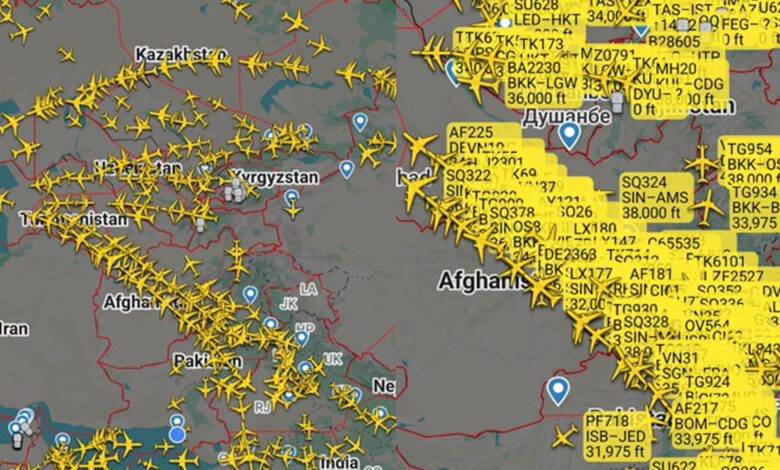 According to data from Flightradar24, several air routes passing through Pakistani and Afghan airspace have become among the world’s most active aviation corridors under the current circumstances. Images sourced from the flight-tracking platform show a noticeable concentration of aircraft traversing both countries’ skies.