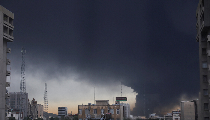 Islamabad: Thick black smoke covered large parts of Iran’s capital Tehran on Sunday morning following an overnight attack on an oil depot in the city.