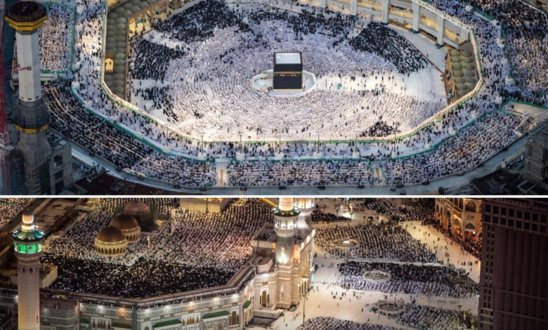 Large numbers of Saudi citizens, residents, and international pilgrims were already present at both holy mosques. All floors, corridors, basements, rooftops, surrounding streets, commercial areas, and hotel passages were filled with worshippers.