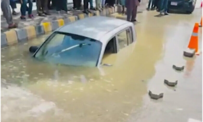 Woman Rescued After Car Sinks into Pit on Tariq Road, Karachi