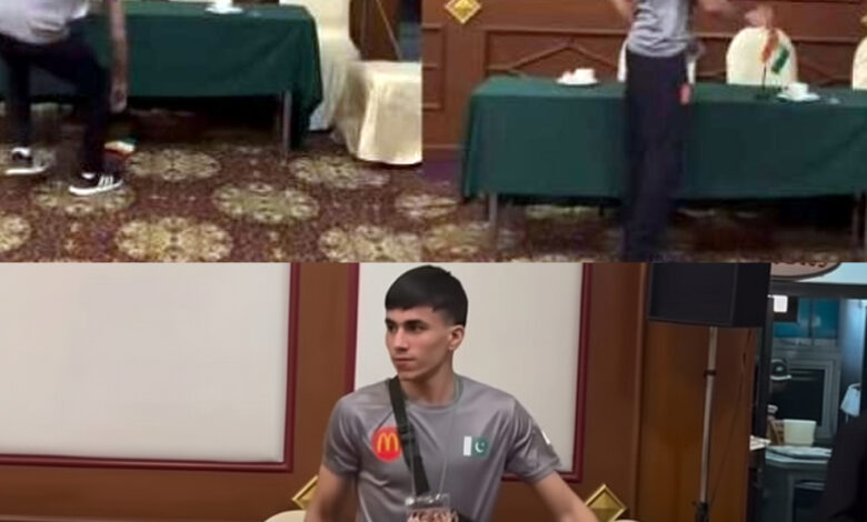 Pakistani Boxer Wins Hearts by Respectfully Placing Fallen Indian Flag on Table
