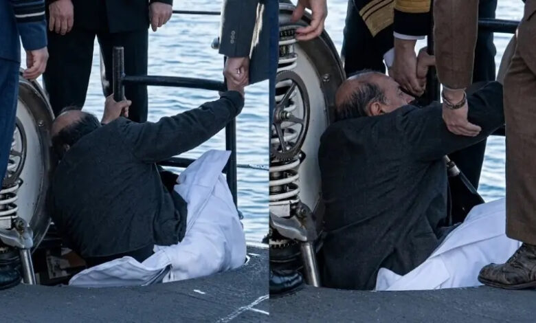 In the viral footage, Rajnath Singh can be seen trying to step into the submarine’s narrow entry point. As he steps forward, one of his feet slips downward while the other gets momentarily stuck at the entrance, causing him to lose balance.